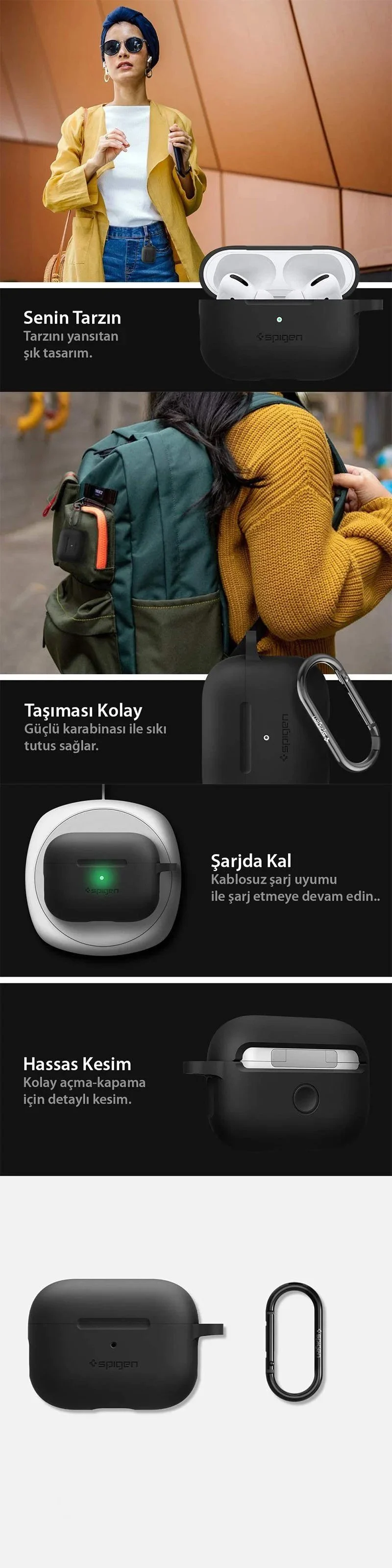 Spigen Apple AirPods Pro Kılıf Silicone Fit (Silikon) Black