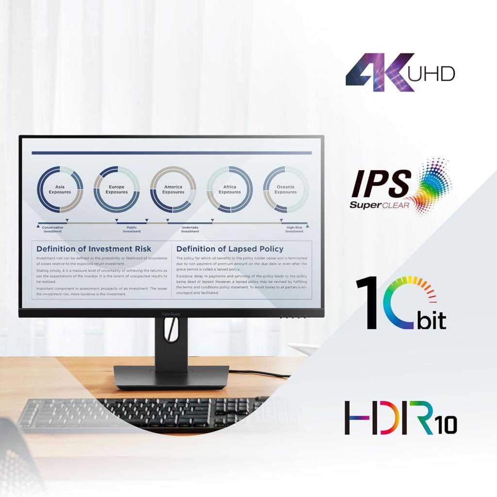 شاشة عرض ViewSonic VG2762-4K مقاس 27 بوصة ودقة 4K Pivot IPS وتردد 60 هرتز ووقت استجابة 4 مللي ثانية