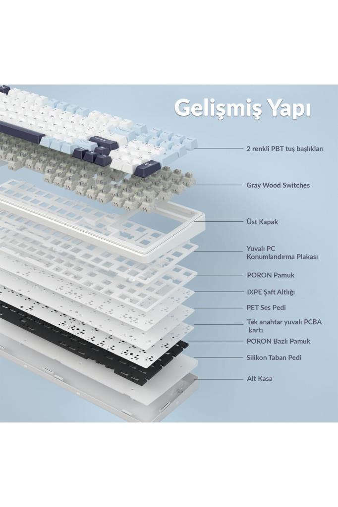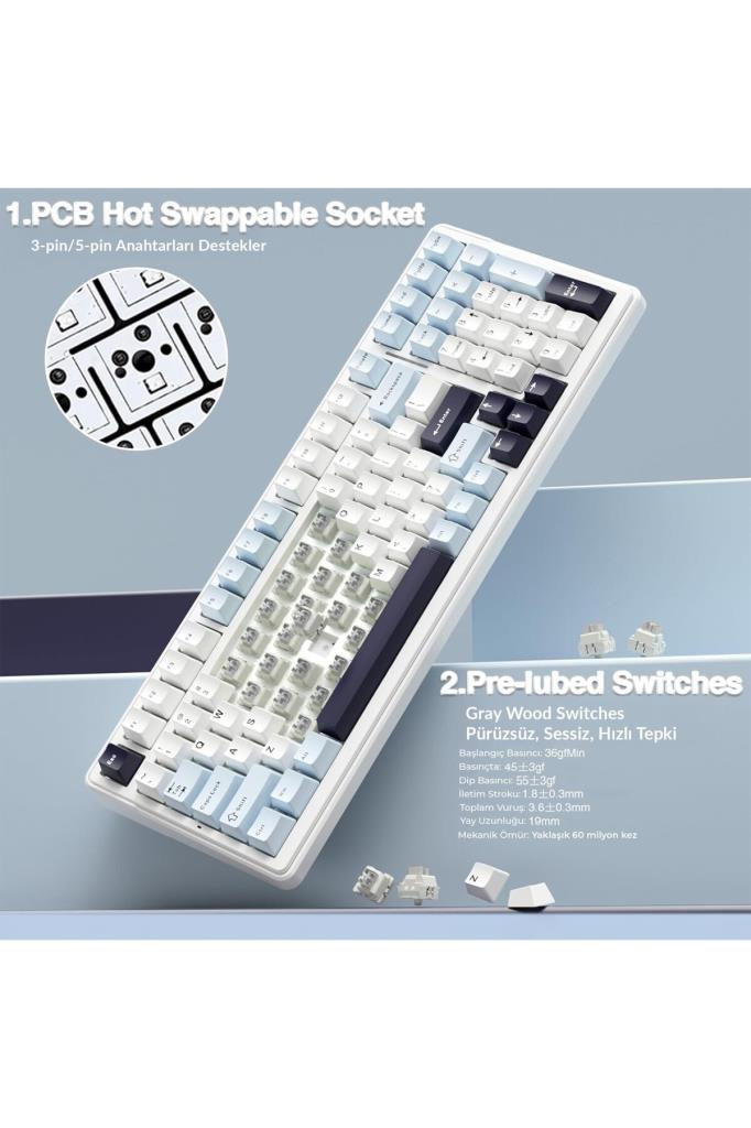 Aula F99 Lacivert RGB GrayWood V3 Switch Kablolu/Kablosuz Mekanik Oyuncu Klavyesi Outlet