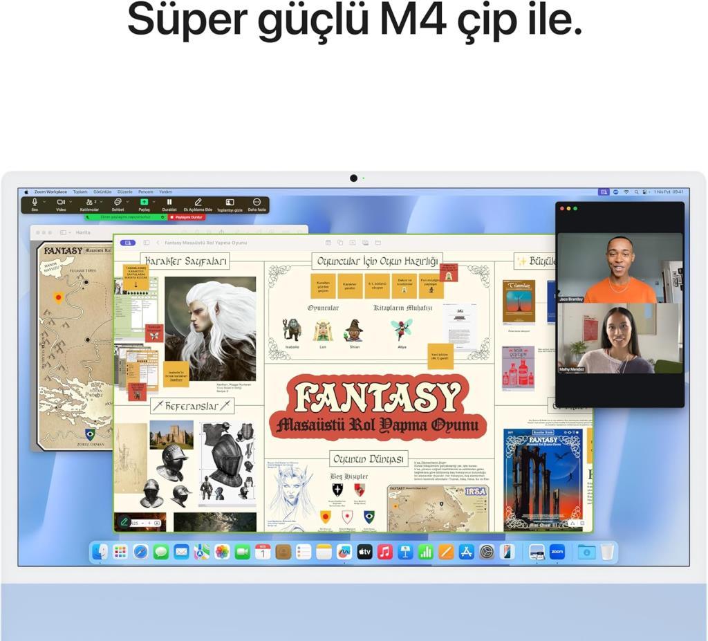iMac M4 Mavi MWUF3TU/A 16 GB 256 GB SSD 24" 4.5K All in One PC (Apple Türkiye Garantili)